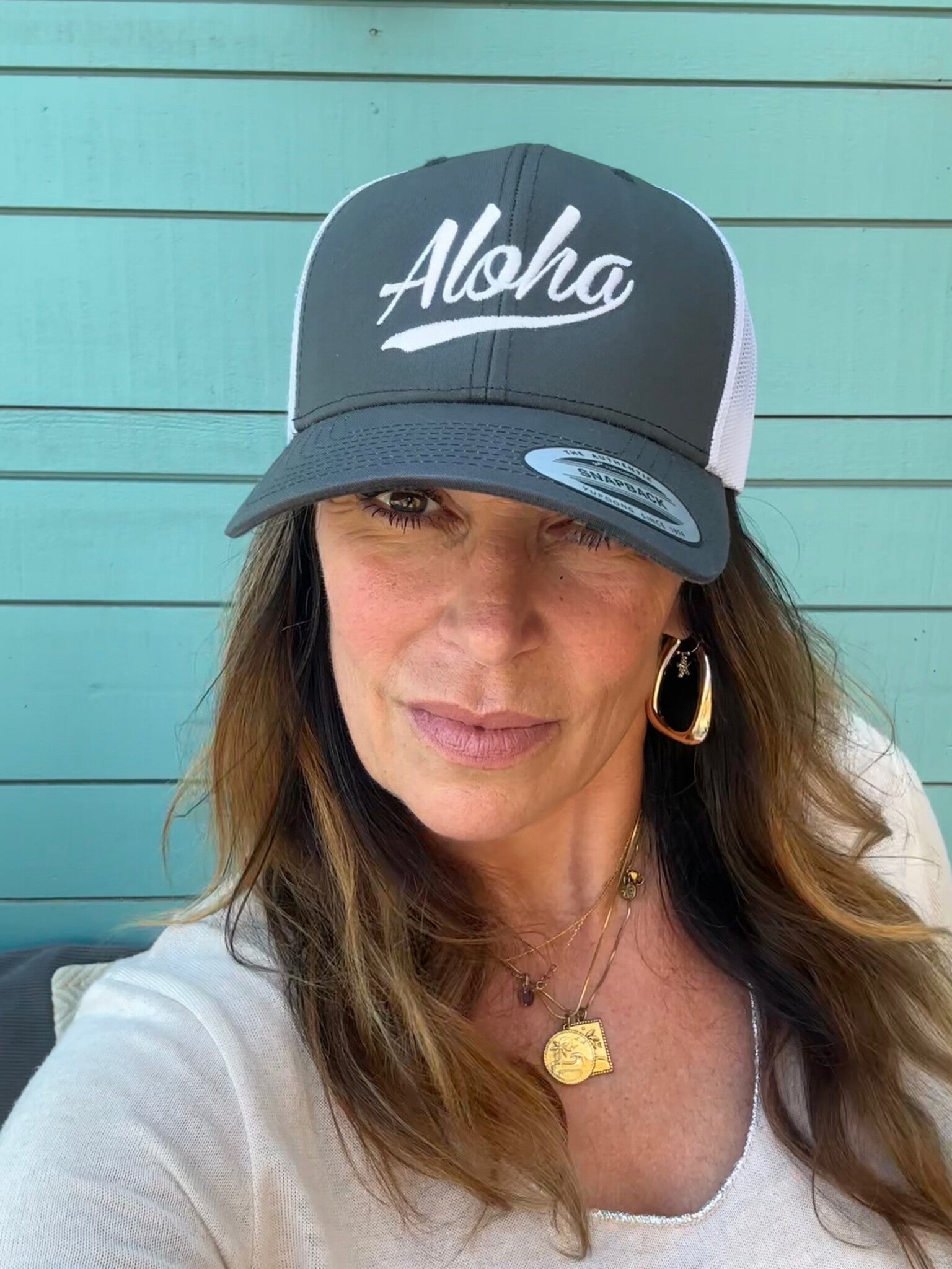 Aloha 6-Panel Trucker Cap Dark Grey White