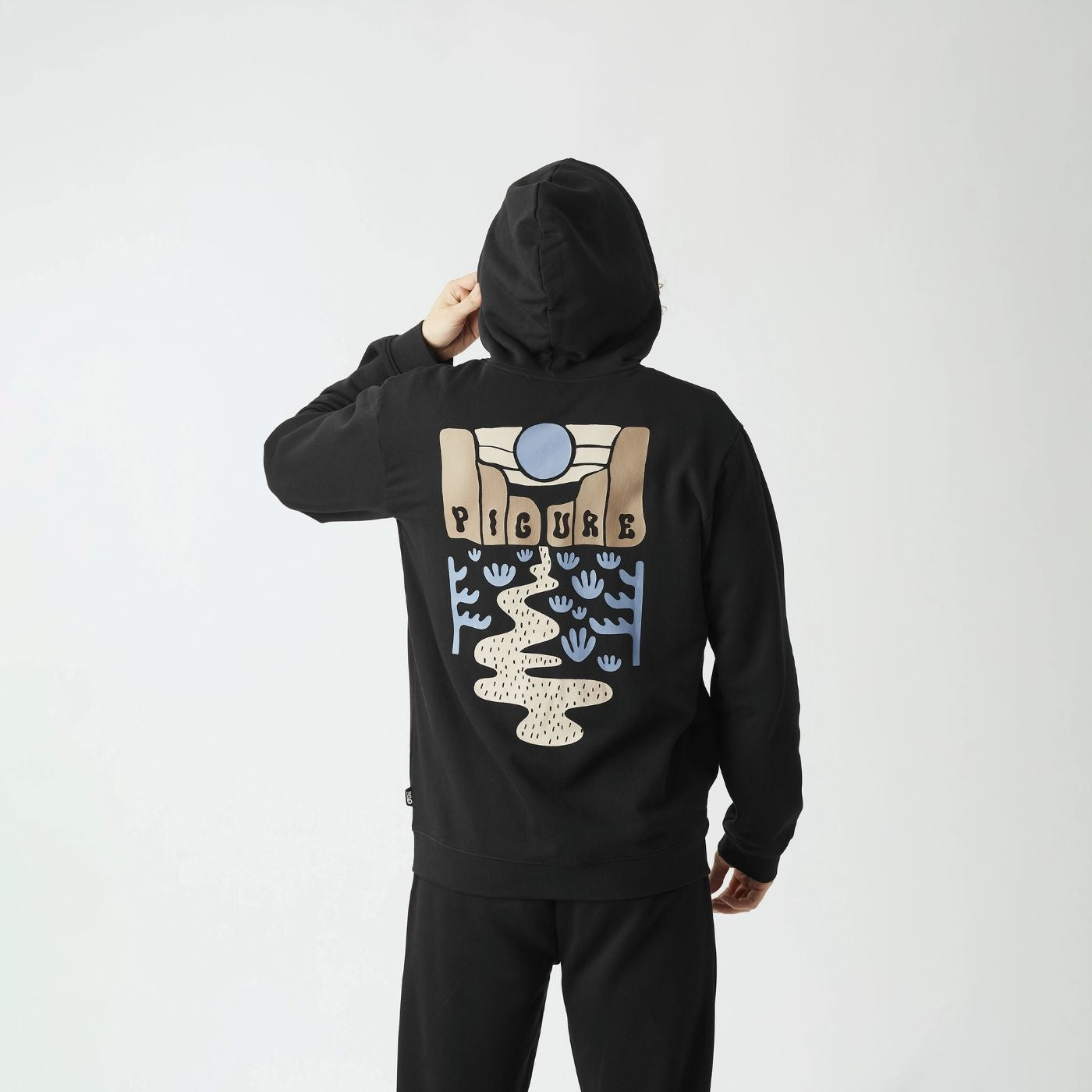 Men's black hoodie with Picture Organic Clothing print. Lesen Sie mehr