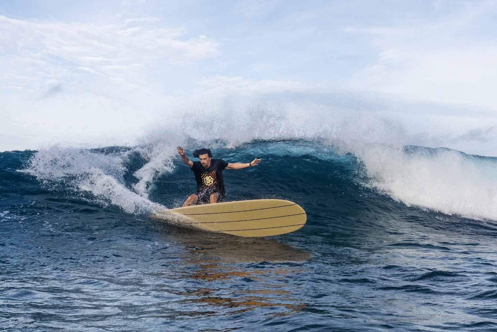 Alain Minvielle has extensive shaping experience in California and a fine appreciation for the flow and glide of the classic style. With Edouard’s input they have created a Classic shape inspired by the classic 60’s model of Longboarding (no edge) while adding some more modern bottom line to find the perfect cruiser with surprising manœuvrability. The critical part of this design is in the rocker and volume distribution - the curve of the rocker will allow you to maintain noserides in the pocket while gliding in small conditions as much as in larger waves. Finally, the unique distribution of volume through the board, from a thick nose to a thin tail, will allow you to cross step with grace and turn with ease.
