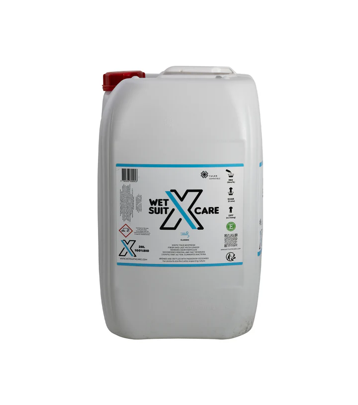 WetsuitXcare is a lightly perfumed see-through (soapy) product. Thanks to its technology it disinfects, eliminates salt, chlorine and other leftovers in/on your wetsuit, restoring elasticity and eliminating those unpleasant odours caused by humidity.