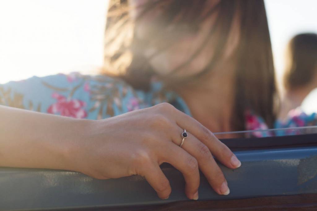 - Silver ring with black stone