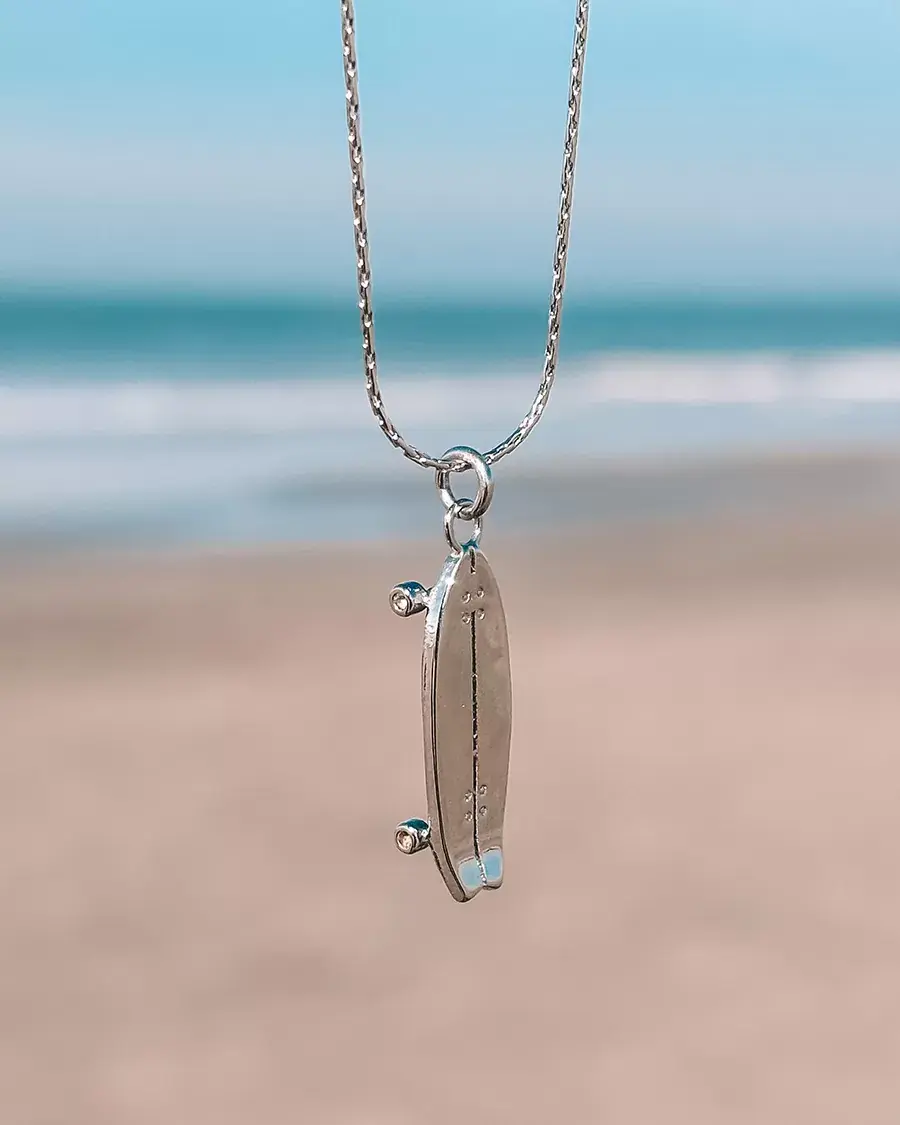Laguna Treasures Ocean Necklace Surfskateboard Silver