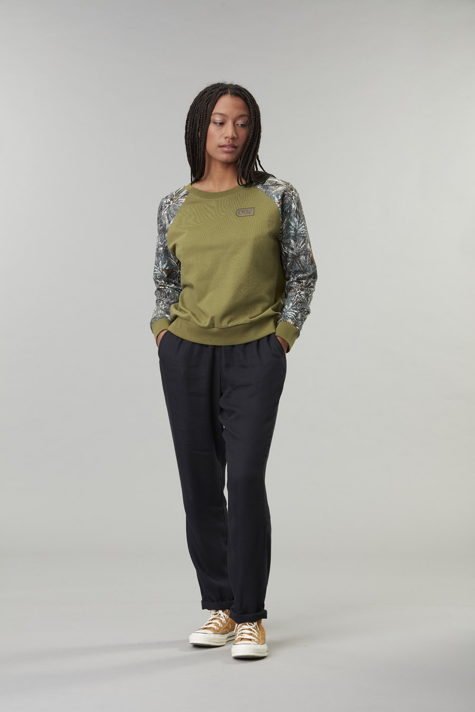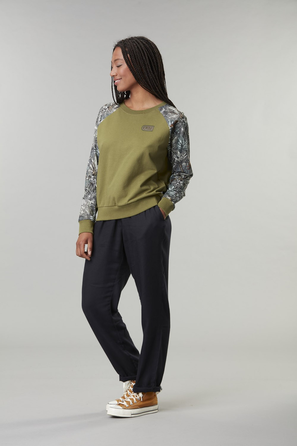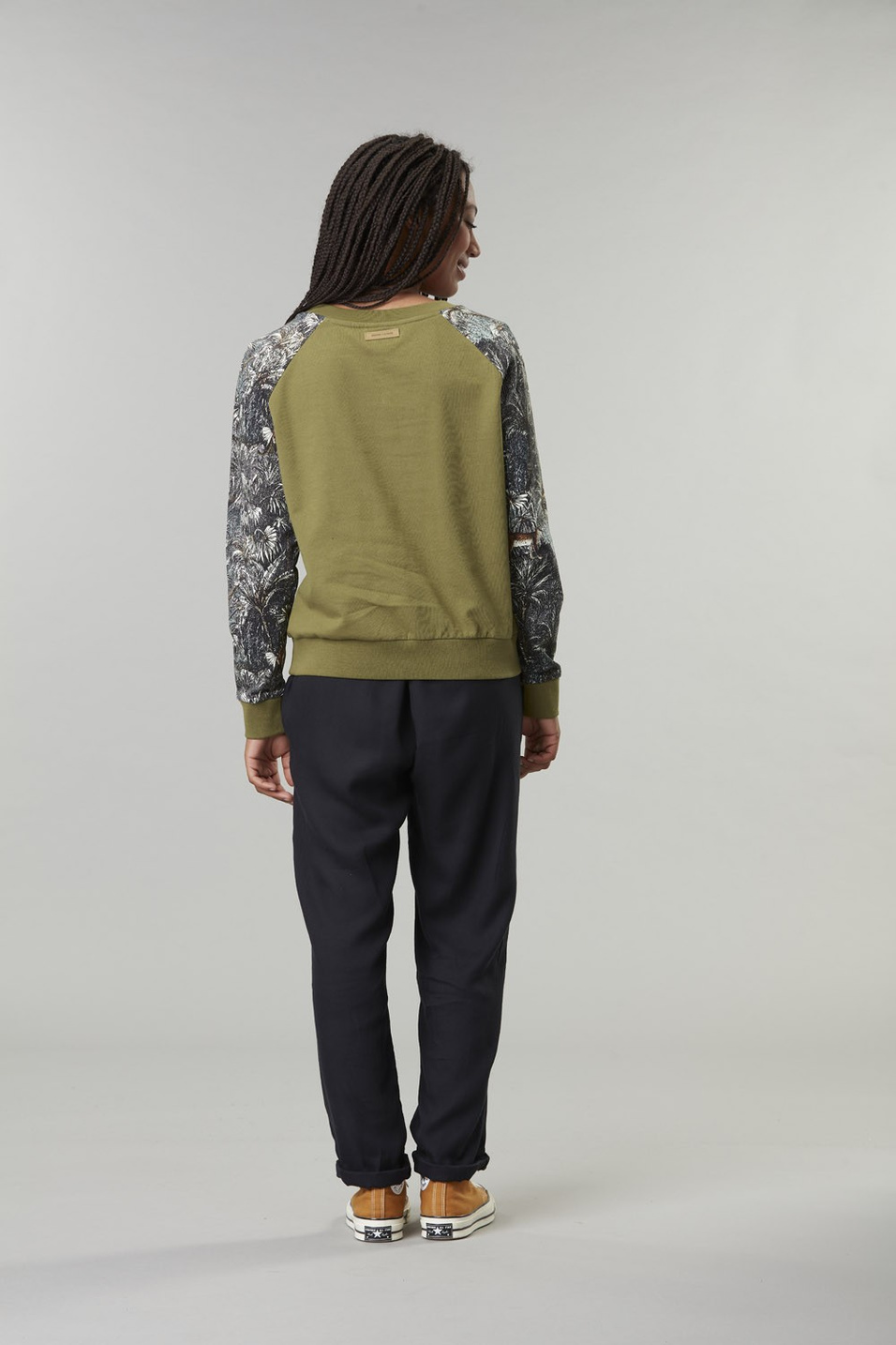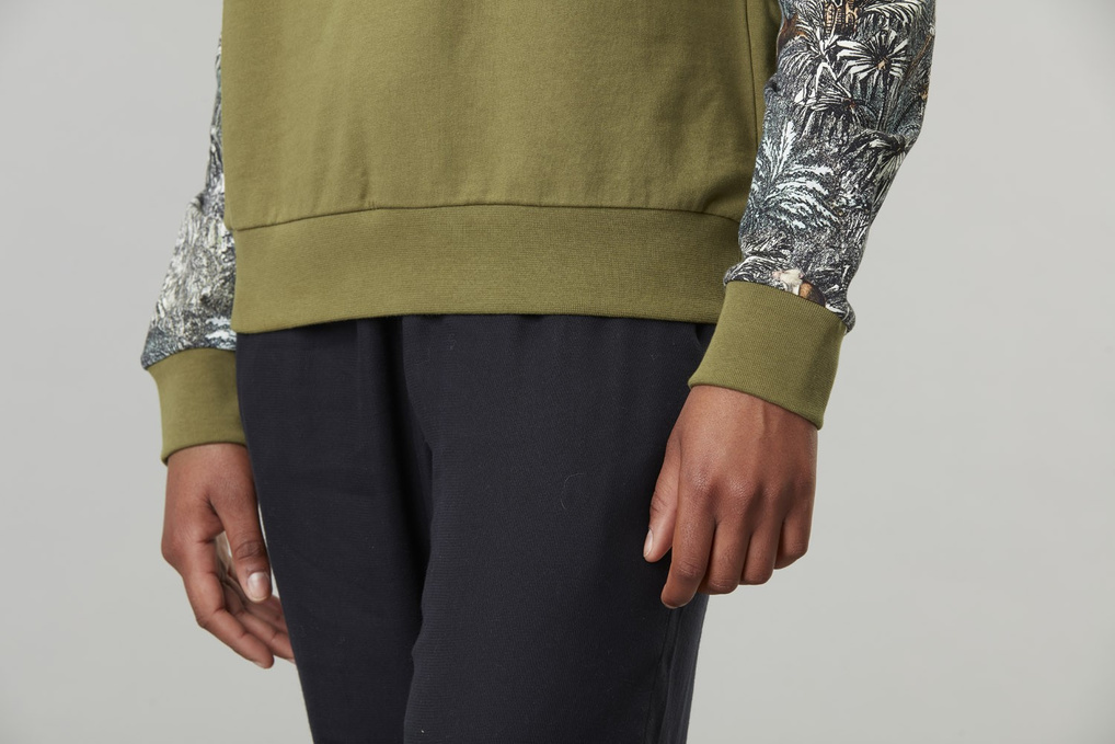- Contrasting printed sleeves