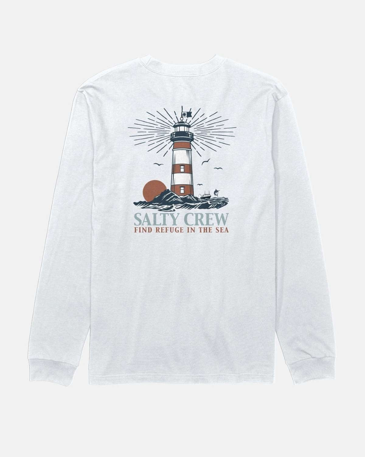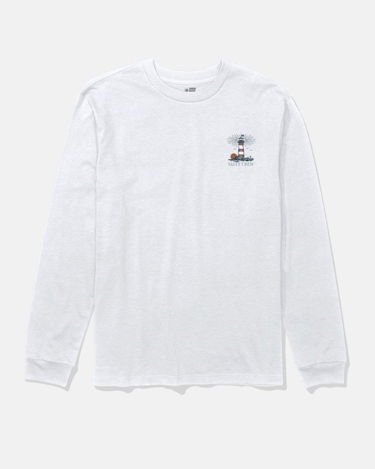 This High Beam L/S Tee in white is crafted from 30 singles combed ringspun cotton, offering a soft and durable fabric ideal for everyday wear. Featuring screenprinted designs on both front and back, it combines comfort with a clean, stylish look that stands up to regular use. Perfect for those seeking quality and subtle detail in a long-sleeve tee.