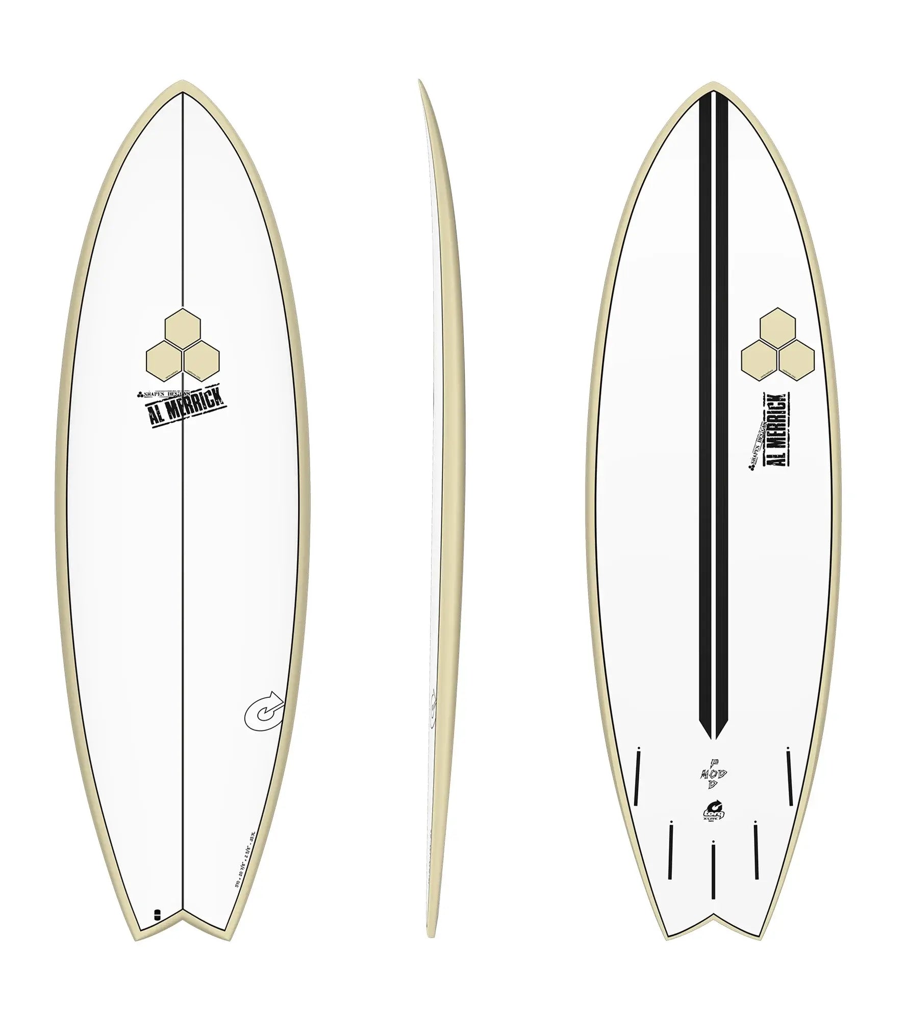 The Pod Mod design is a heavily modified Pod, designed to be ridden even shorter and wider than the original, catering to the surfer who wants a little more volume forward to catch waves but doesn’t want to sacrifice performance. The tail has been widened for small wave glide, and the original single to double concave has been replaced with a flat entry to concave vee for quick rail-to-rail transitions.