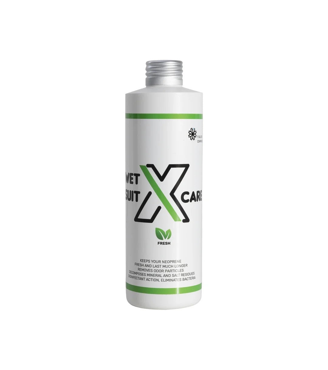 What is WetsuitXcare? WetsuitXcare is a lightly perfumed see-through (soapy) product. Thanks to its technology it disinfects, eliminates salt, chlorine and other leftovers in/on your wetsuit, restoring elasticity and eliminating those unpleasant odours caused by humidity.