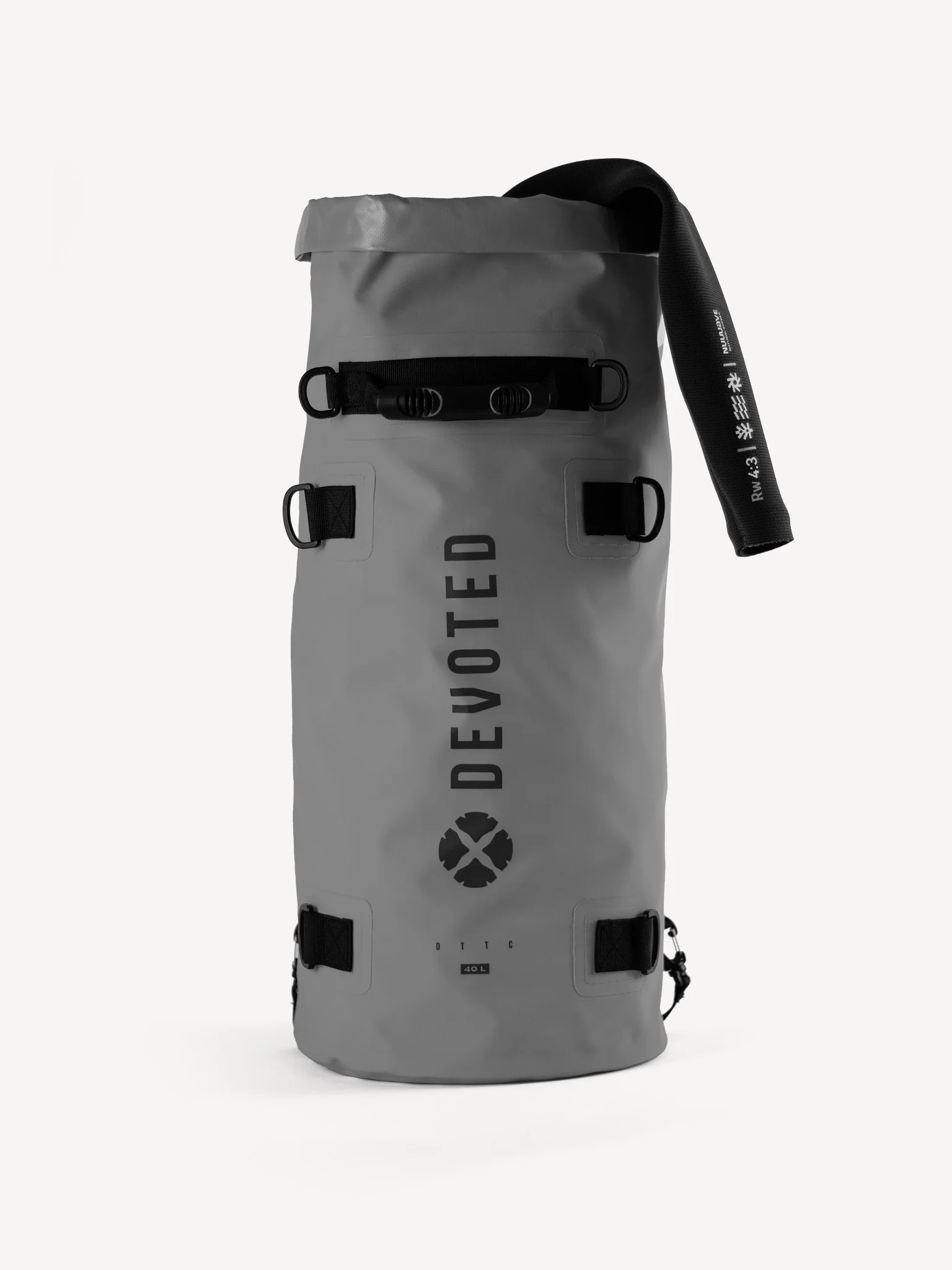 De Devoted 40 Liter Dry Bag-rugzak introduceert een veelzijdige opbergoplossing terwijl je je spullen droog houdt. Met een indrukwekkende inhoud van 40 liter biedt deze tas voldoende ruimte voor al uw spullen. Deze tas is gemaakt van robuust PVC en valt op als een van de meest robuuste en duurzame opties die beschikbaar zijn. Ondanks zijn royale afmetingen en robuuste constructie blijft onze tas verrassend licht, waardoor hij de ideale metgezel is voor uw reizen.