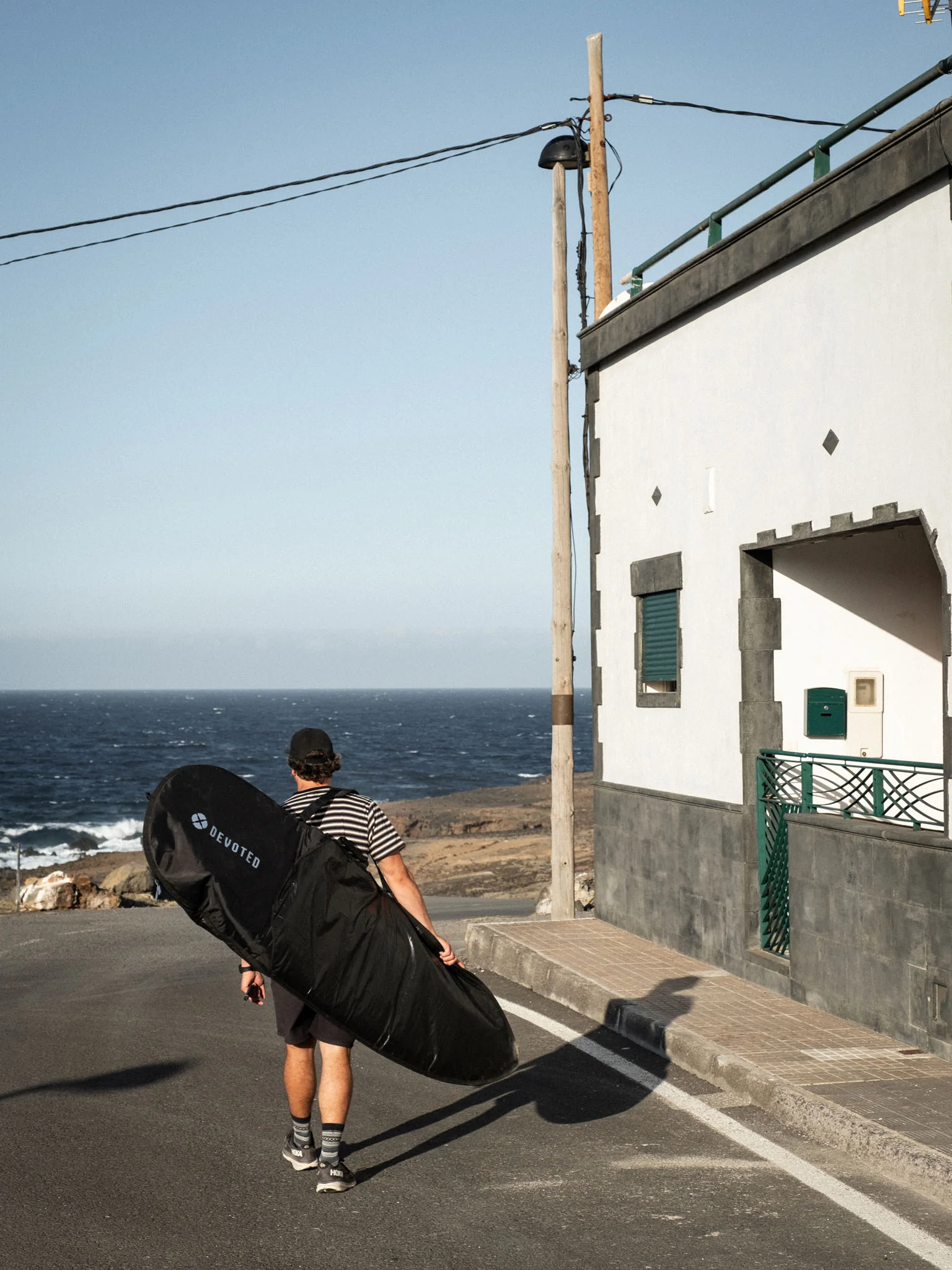 De Devoted Fish 5mm Lite Boardbag 6'0" is ontworpen voor bredere funboards, maar past ook op shortboards. Lichtgewicht en duurzaam – ideaal voor thuisopslag of veilig transport van en naar het strand.