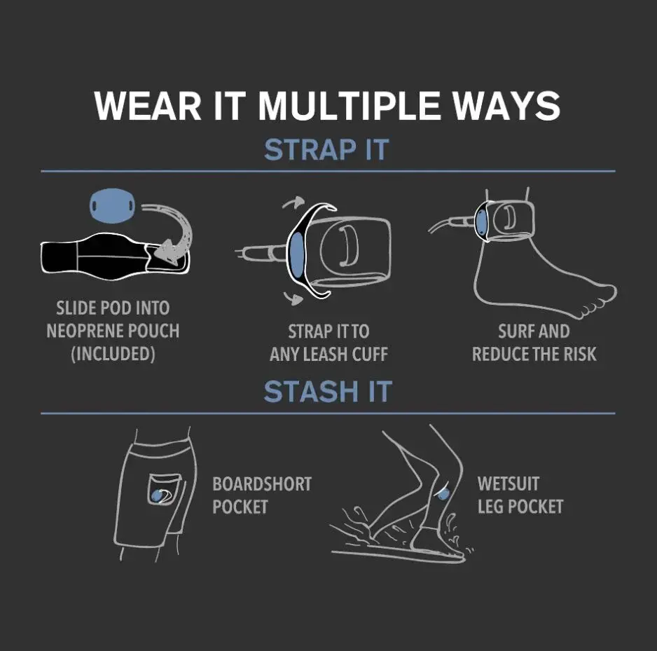 - EENVOUDIGE, VEELZIJDIGE AFSTOTENDE TECHNOLOGIE - Geen batterijen, geen opladen; Altijd aan. Lichtgewicht (56,5 gram). Bevestig aan elke riemmanchet. Draag in een boardshort of een wetsuit-sleutelzakje.