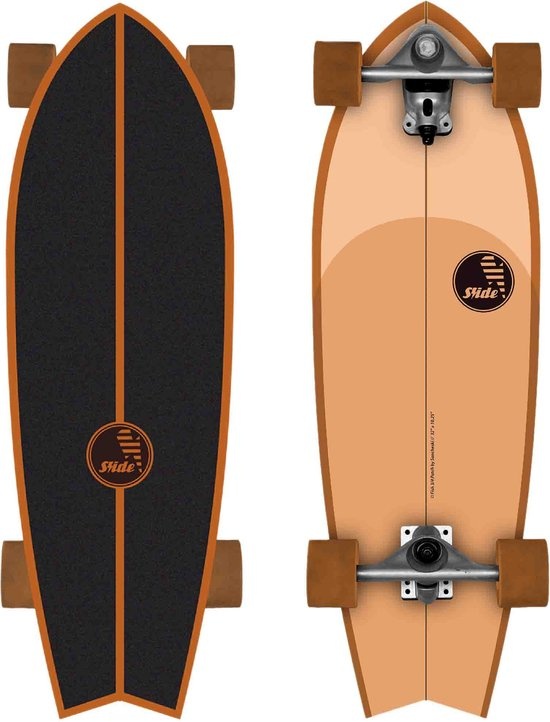 With its fuller nose and smooth line, great fun to surf the streets and have everything under control. The graduated kicktail allows sharp pivot turns and hold through slides. The Fish is a perfect shape for those surfers used to extra volume at the nose of their board. It is a stable board, really enjoyable for those riders looking for a model that enables them to slide and practice tight turns, but also for those improving balance when turning and generating speed. SET UP Deck FISH 32” 7 ply Maple deck Slide trucks 65mm, 78A wheels