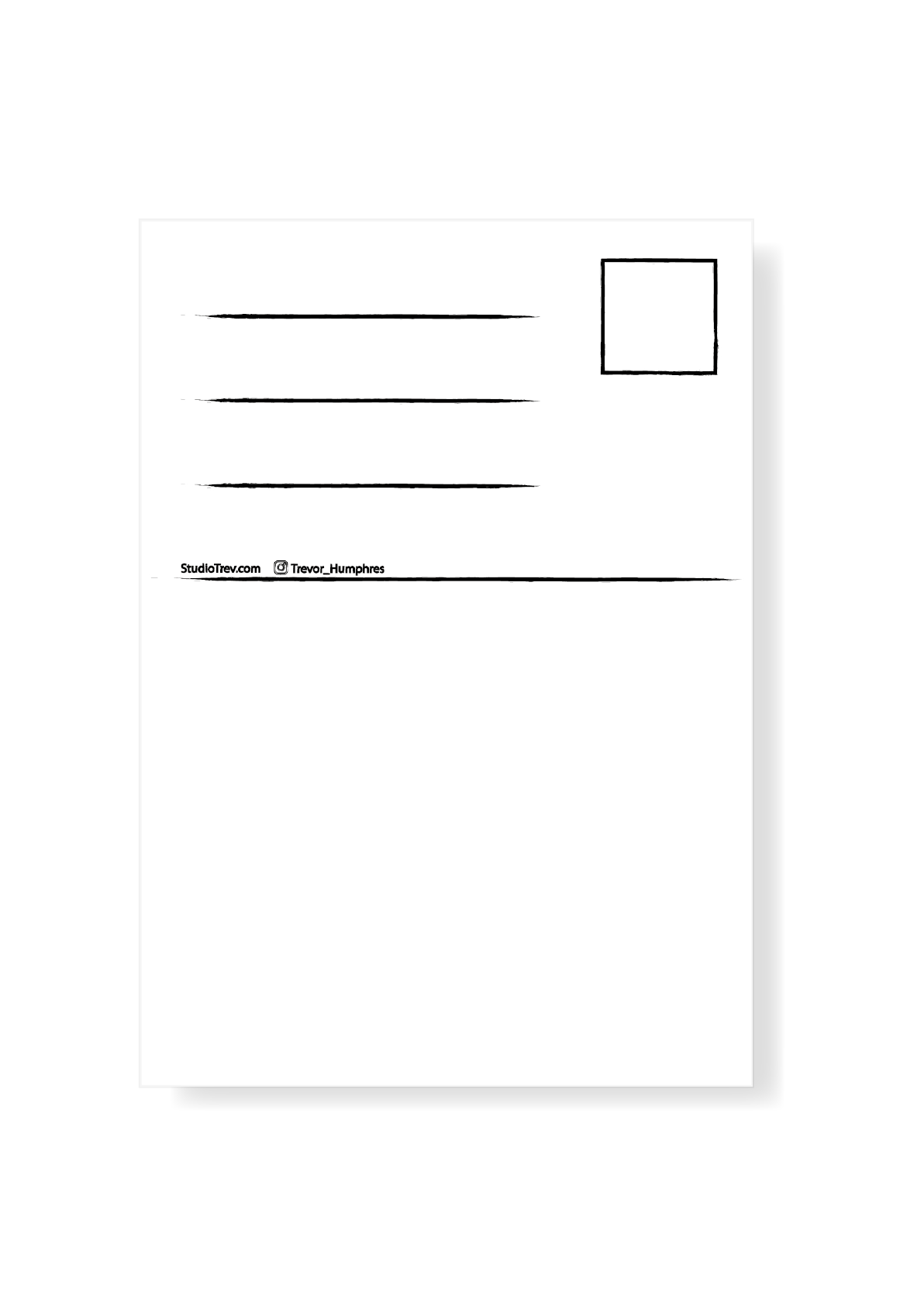 - Ansichtkaarten om te versturen met artwork van Trevor Humphres