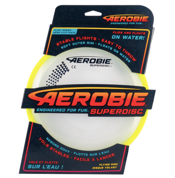 Zorg voor indrukwekkende worpen elke keer met de Aerobie Superdisc! Deze hoogvliegende disc heeft een dun ontwerp met een lage profiel en een spoiler rand voor langere, nauwkeurigere vluchten!