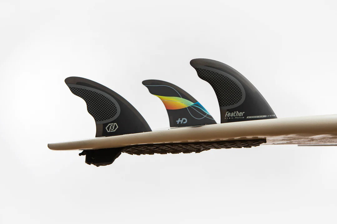 De Feather Fins Hydrodynamic Thruster is het resultaat van een intensief ontwikkelproces waarbij feedback van het internationale Feather Fins team centraal stond. Na talloze testsessies in uiteenlopende surfcondities is een vin ontstaan die compleet anders aanvoelt dan traditionele thruster sets.