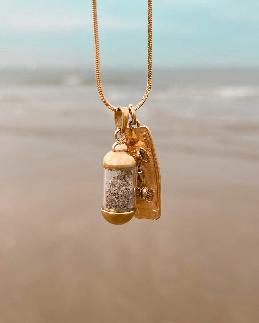 De ideale set voor kitegirls. Draag jouw passie altijd bij je, waar je ook bent. En met je persoonlijke Laguna Beach Pendant, gevuld met het zand van je favoriete strand, heb je een bijzondere, blijvende herinnering aan je mooiste kitereis of grootste avontuur.