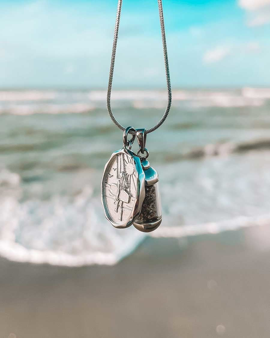 Voor echte kitegirls! Naast de toffe bedel kan je de Laguna Beach Pendant vullen met het zand van je favoriete kitesurfspot. De perfecte manier om een blijvende herinnering bij je te dragen aan de beste waves of roadtrip ever. Leuk voor jezelf of als cadeau voor je kitesurf maatje. De kleur van jouw zand geeft je sieraad een unieke uitstraling en persoonlijke touch.