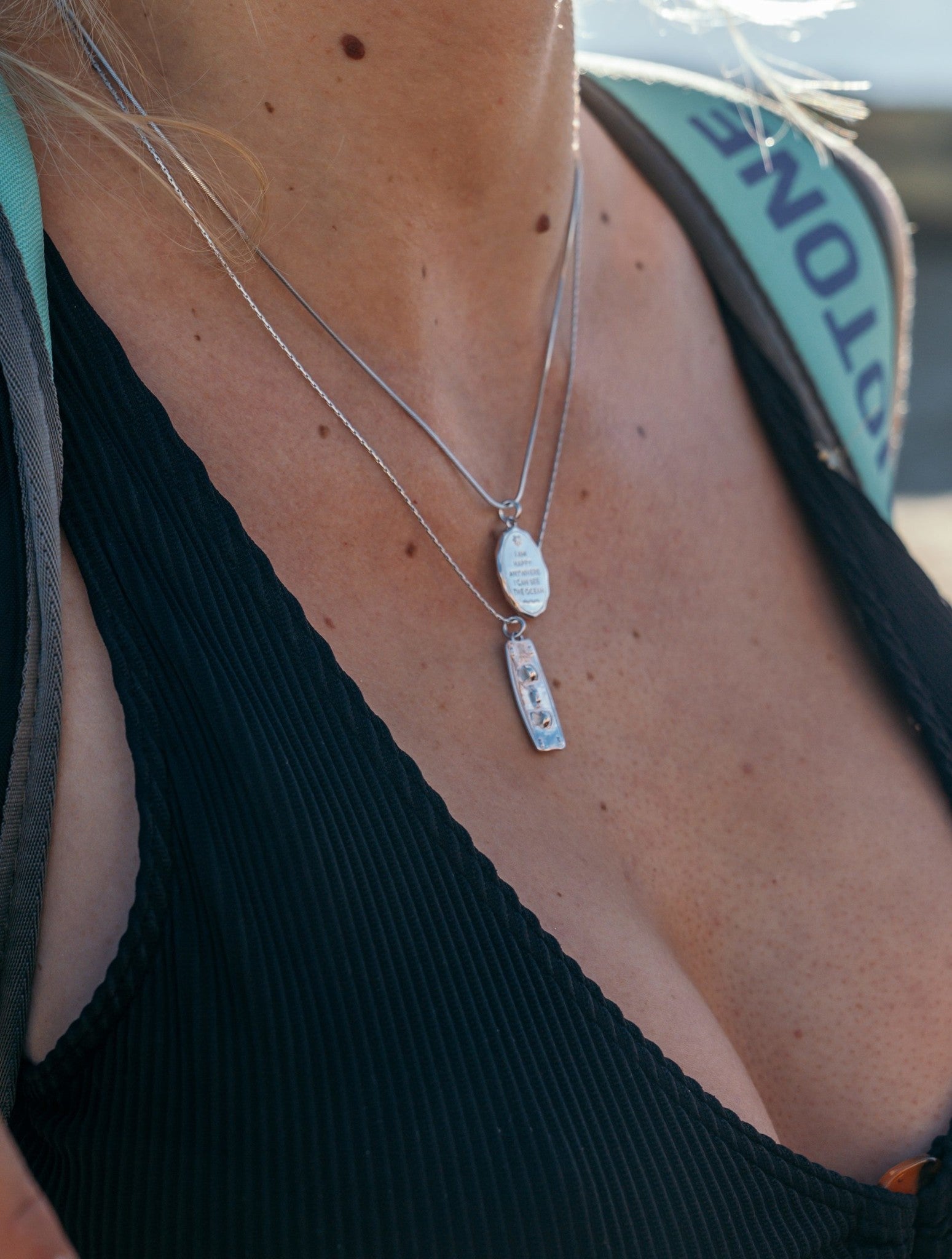 Deze ketting komt als een set; een zilveren ketting en een Laguna kiteboard hanger.