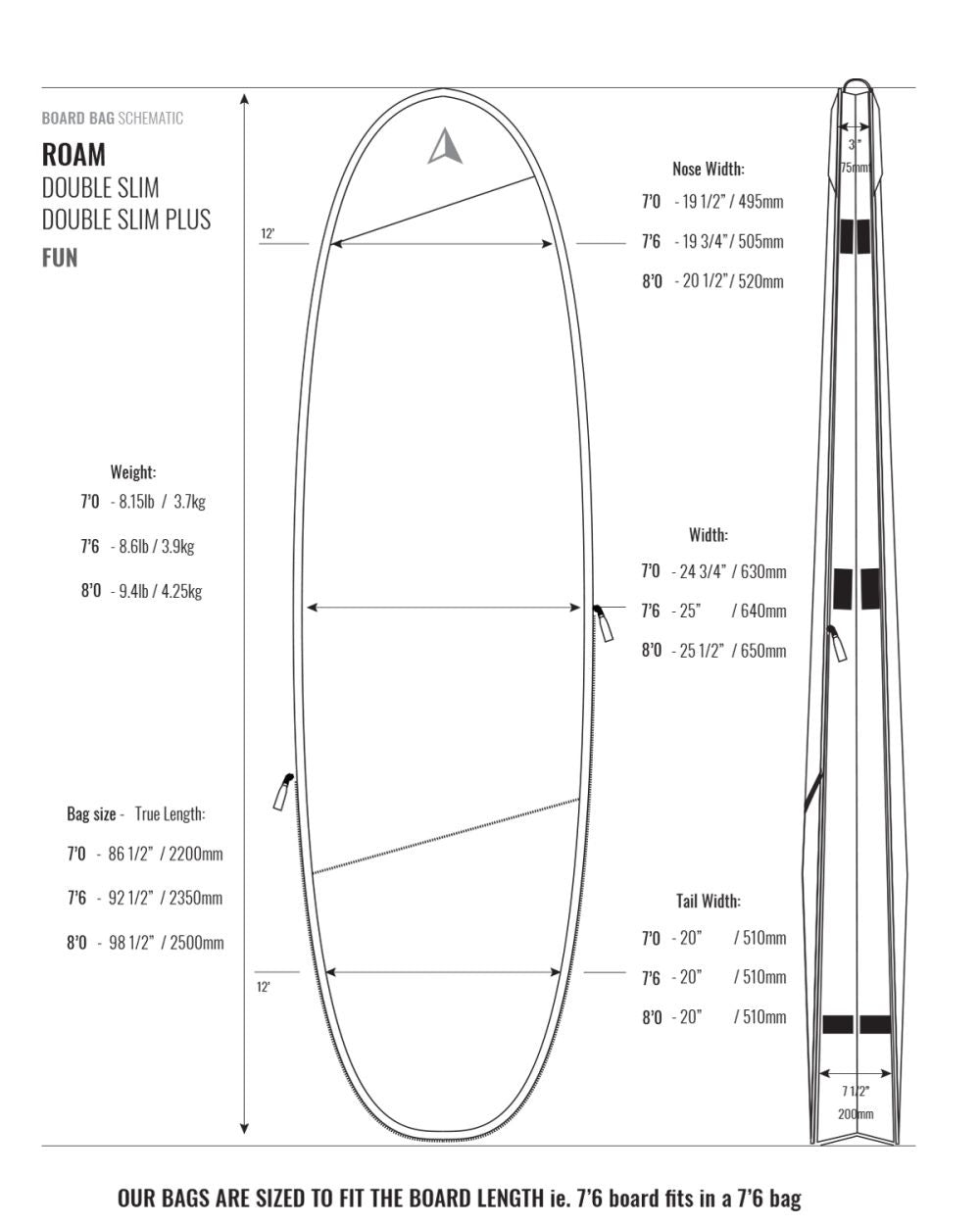 ROAM 7'6 Tech PLUS Double Slim Funboard Boardbag Black
