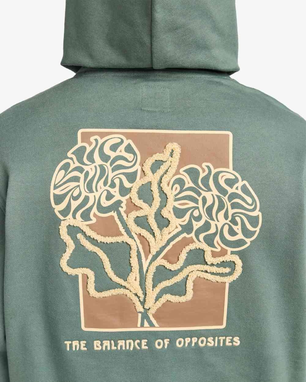 De RVCA Heren Flower Balance Hoodie in Balsam Green is een comfortabele hoodie met een relaxte pasvorm en bloemige graphic details. Ideaal voor dagelijks gebruik.