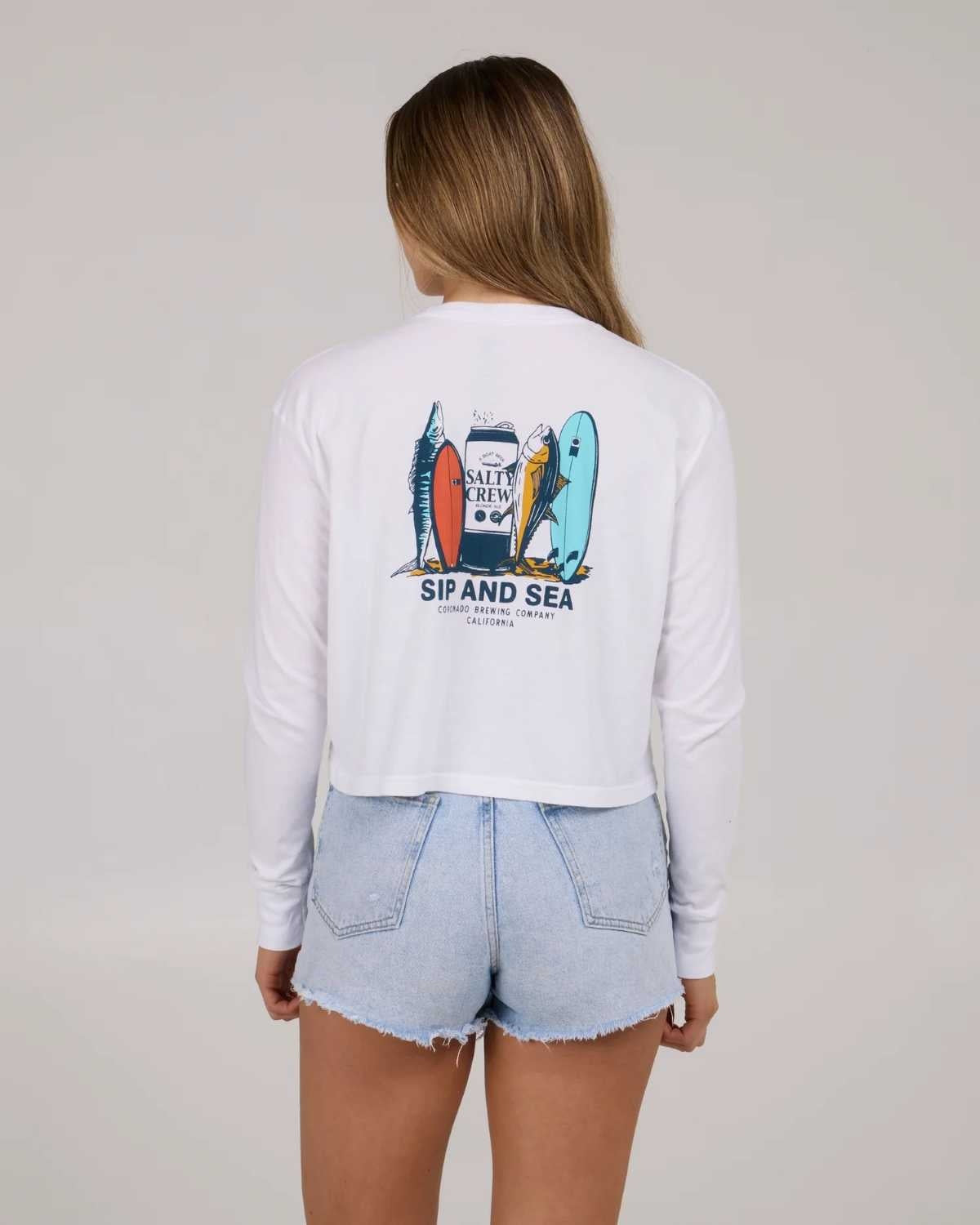 Salty Crew Dames Sip & Sea LS Crop Tee White