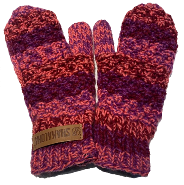 Kleurige merino handschoenen van Shakaloha met banen in vele verschillende kleuren. De handschoenen zijn zacht en warm en handgebreid in Nepal. Elk paar is anders qua kleur, dus uniek!