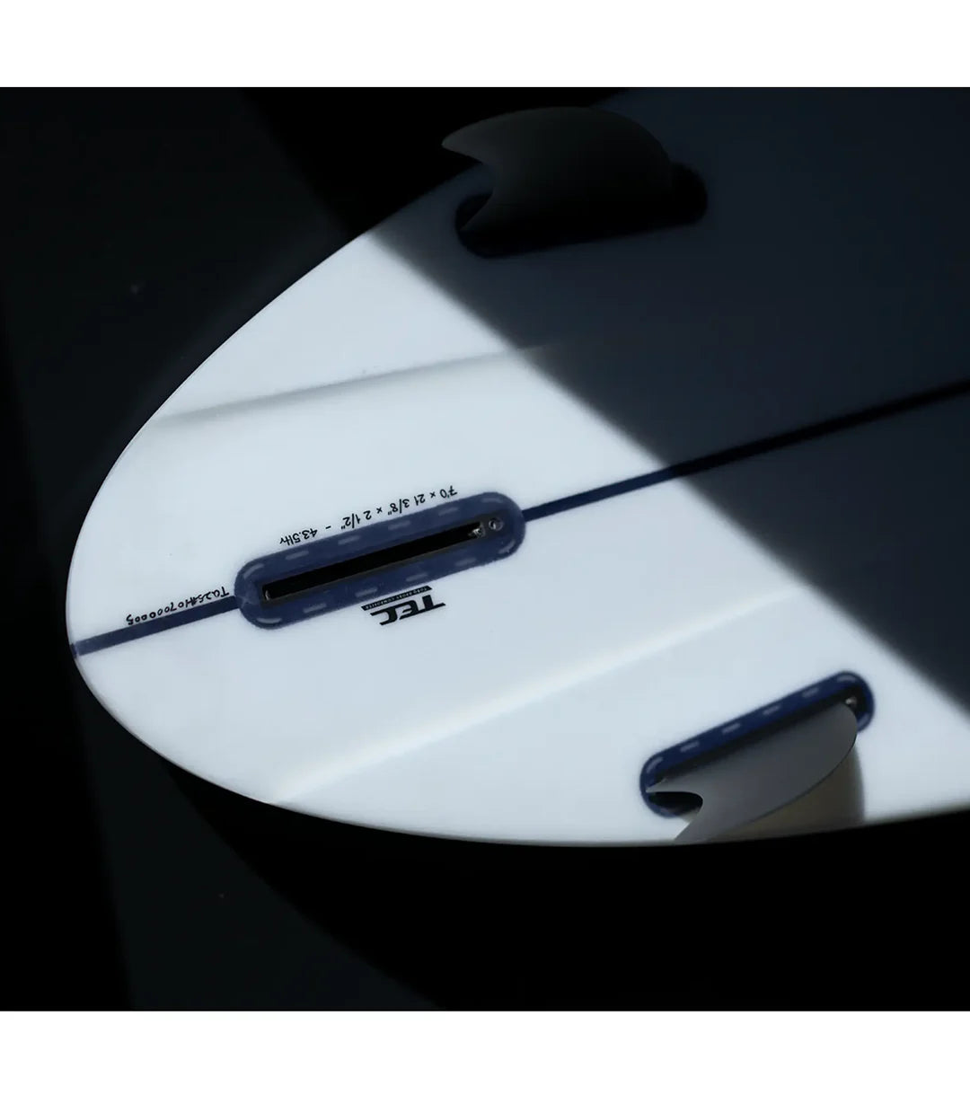 A high performance, easy surfing midlength. With a really smooth outline and easy boxy rails it's naturally flowy and forgiving, allowing you to surf it in any conditions. But it's not only made for cruising, its rocker and lift at the back paired with the twin fin preference makes it really manoeuvrable.