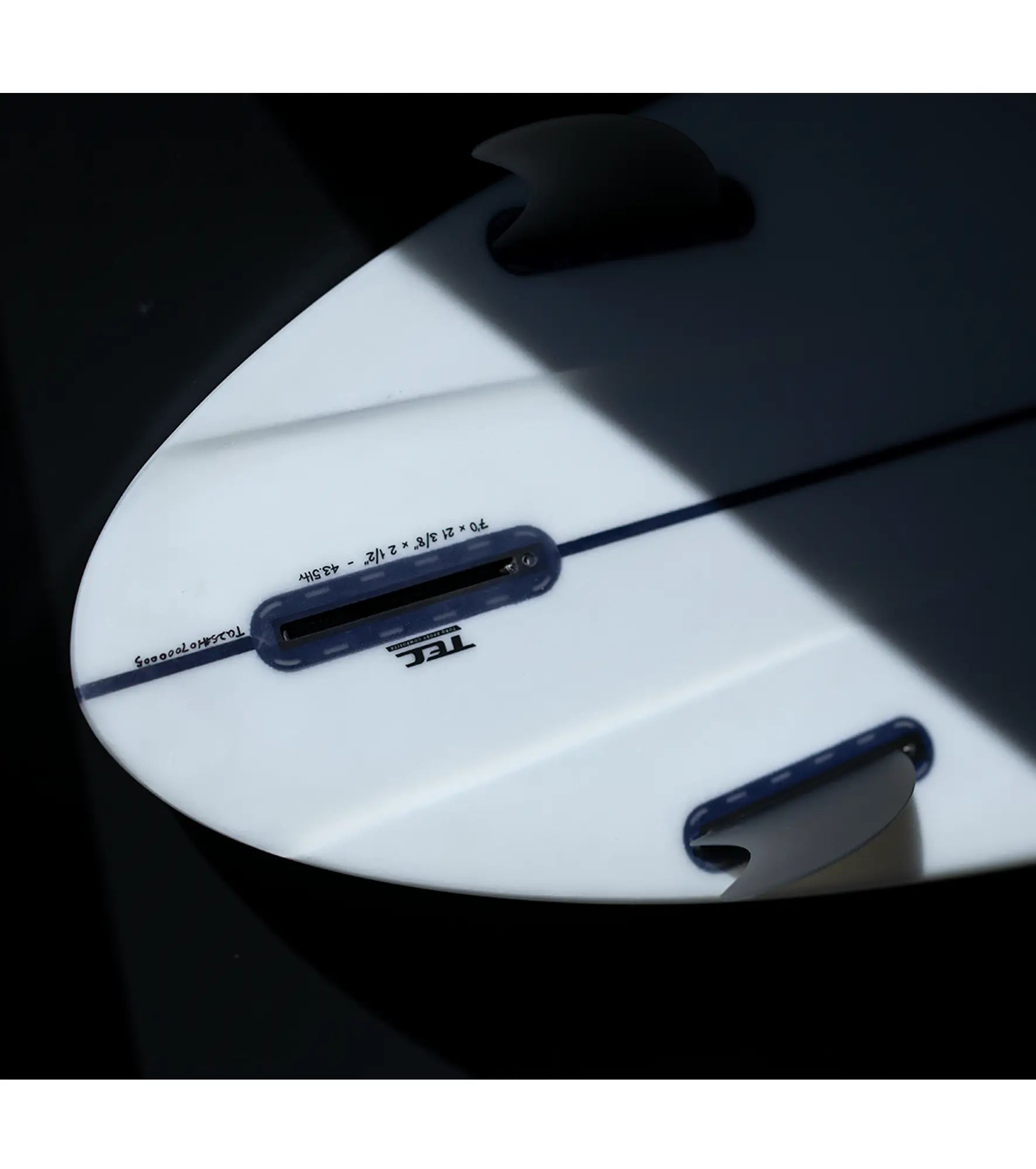 We can add extra layers of fiber while keeping the overall weight down – our shortboards have 18oz of fiber on the deck and 10oz on the base – approximately double of the fiber found on most boards of the same weight.