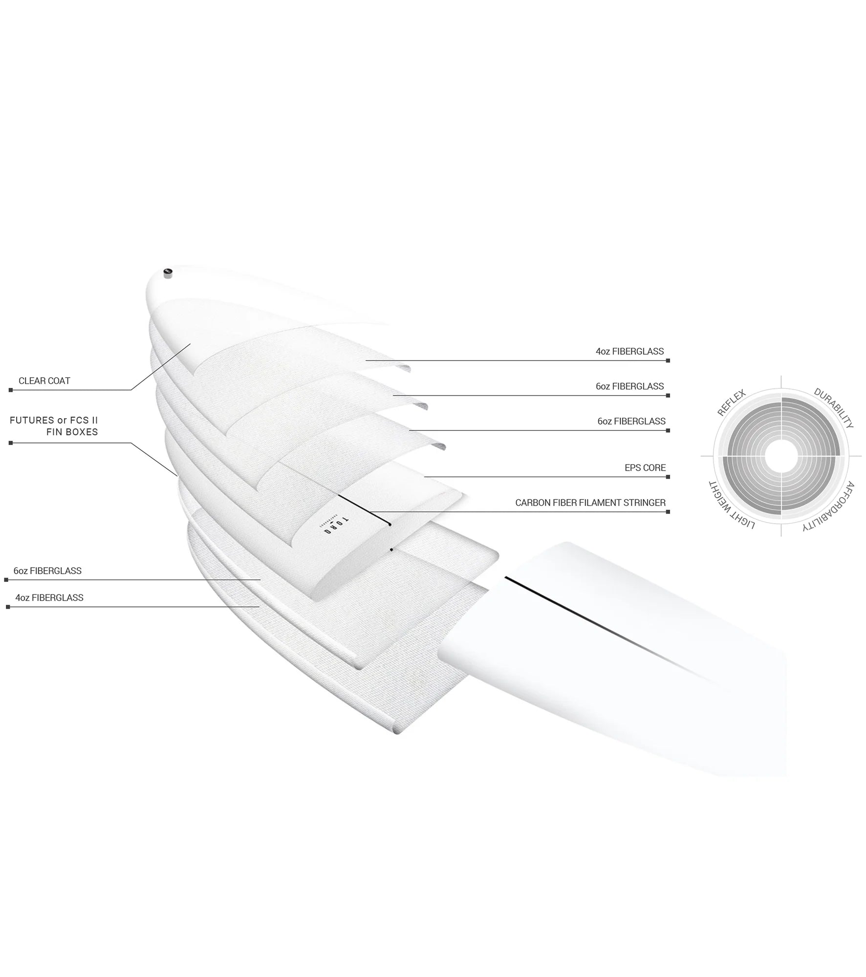 Torq Epoxy Composite offers performance shapes in our vacuum epoxy layup. Vacuum epoxy uses a hand lay-up process, with a vacuum bonding process to bind the fiber to the board and remove excess resin. We have a few tricks in the vacuum process that keeps the resin content at a much better level than can usually be achieved.