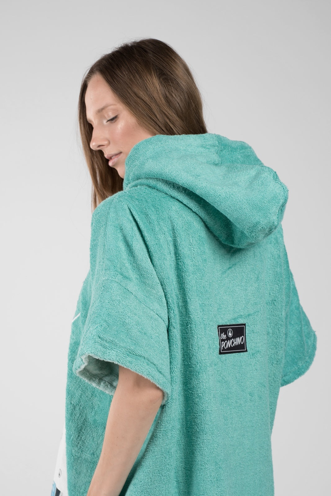 Wave Hawaii Surf Poncho Liz – deze mintgroene unisex surfponcho combineert natuurlijke materialen met uitzonderlijk comfort. Gemaakt van 60% bamboeviscose en 40% katoen, volledig vrij van plastic en microvezels, is hij zacht voor de huid, ademend en duurzaam.